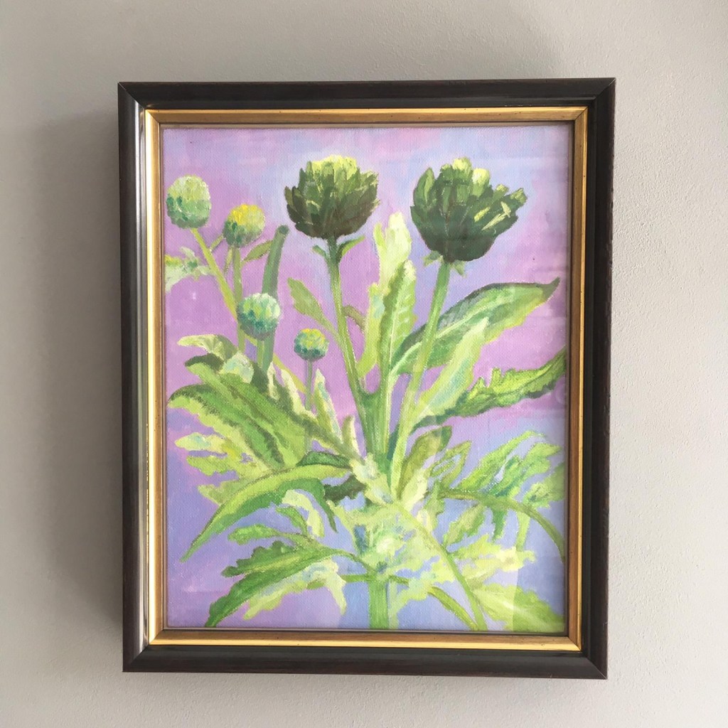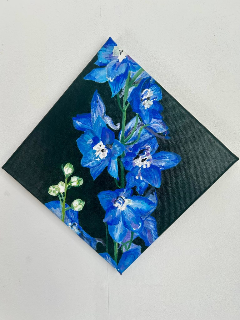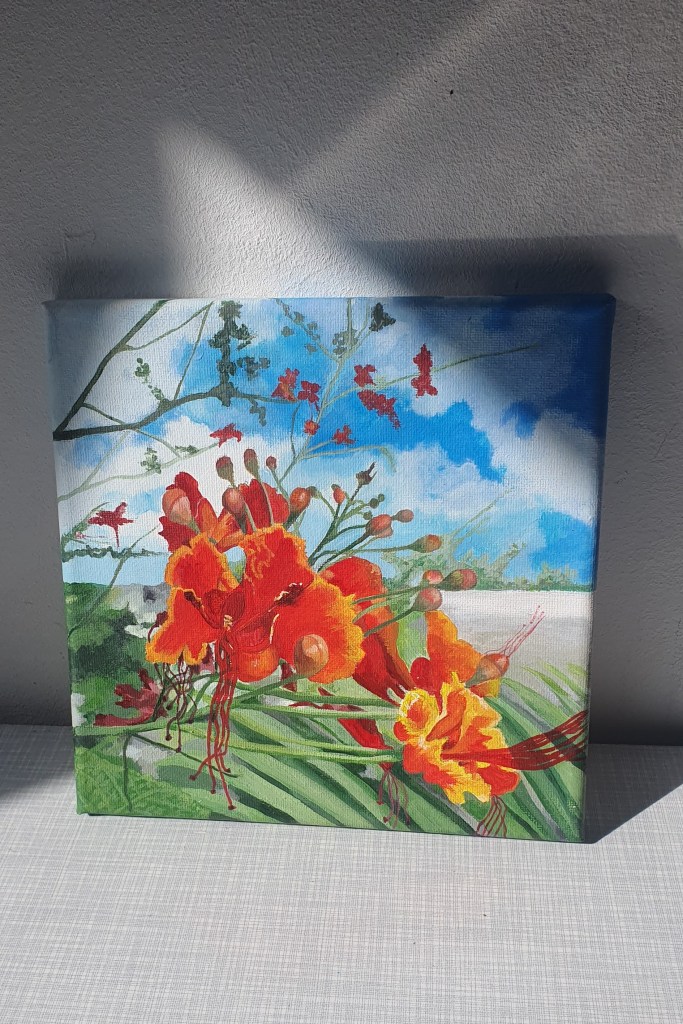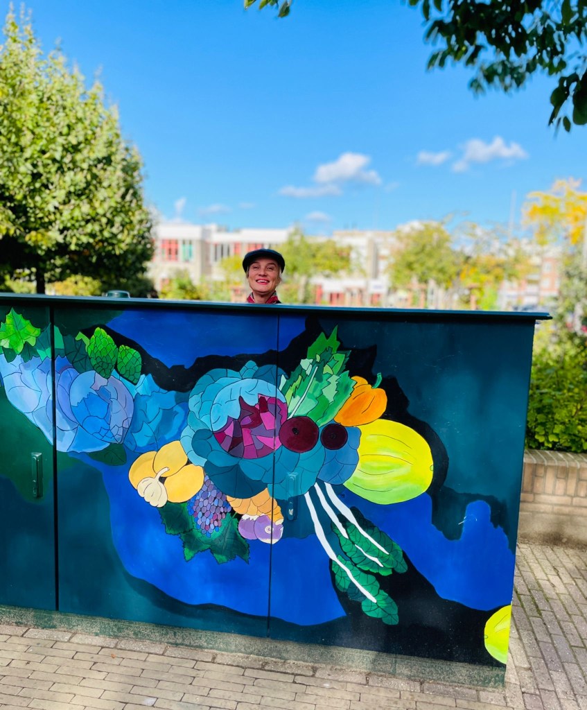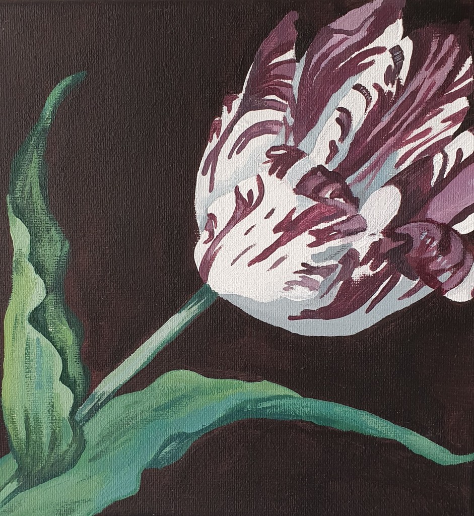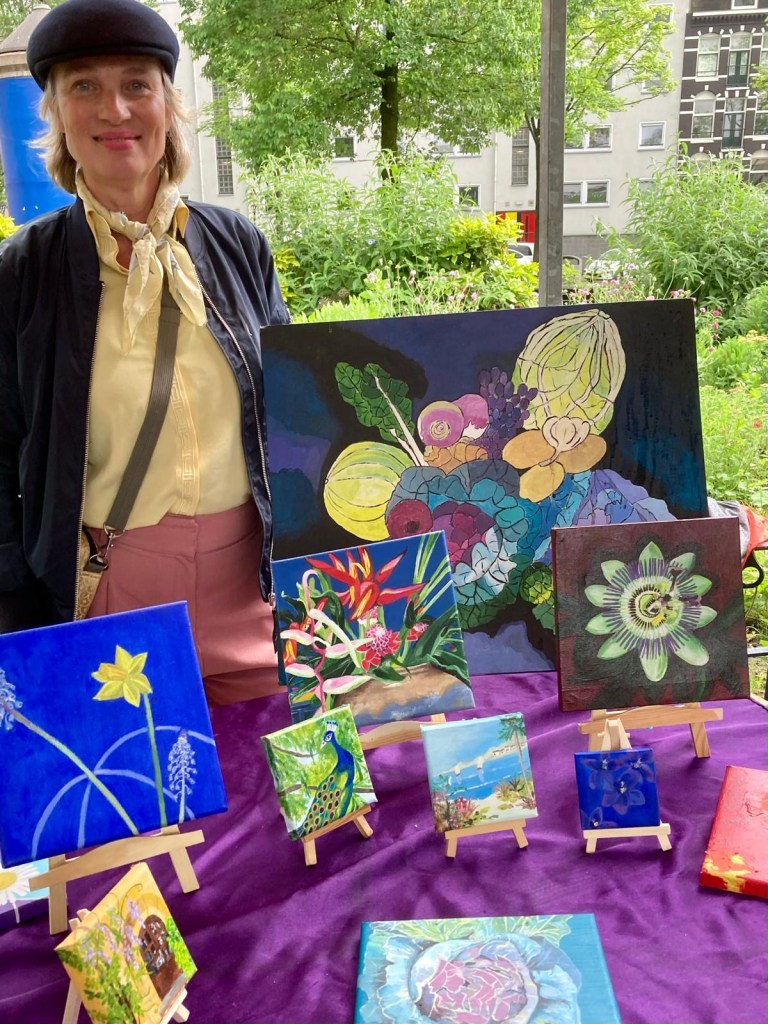 ik maak voornamelijk schilderijen van bloemen en groenten. Deze zijn natuurgetrouw maar altijd met een vervreemde achtergrond van kleur. De bloemen komen ook op potten en schotels terecht waardoor er nog meer vrolijkheid het balkon, de tuin, de huiskamer in kan komen!